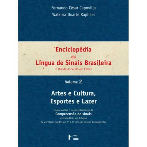 Este segundo volume da Enciclopédia da Língua de Sinais Brasileira concentra-se nos sinais relacionados aos temas Artes e Cultura, Esportes e Lazer. No primeiro grupo, traz os sinais referentes aos universos das profissões de música e dança, teatro e cinema, circo, artes gráficas, ciência e educação, incluindo aqueles que designam os locais de execução das atividades, bem como as consequências e características delas. O tema Esportes aborda os sinais dos profissionais do esporte e esportistas, os instrumentos e acessórios de esporte, as etapas e características das diferentes modalidades esportivas. O tema Lazer traz os sinais relativos a locais de lazer na natureza, na alimentação, na cultura, nas compras, no turismo e nas diversões, incluindo as referências a equipamentos, objetos, comemorações e aquelas relacionadas ao mundo dos brinquedos, brincadeiras e jogos infantojuvenis.