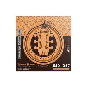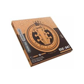 O encordoamento "Ao Rei dos Violões" para Violão Aço é construído com revestimento de cobre banhado a prata sobre um núcleo hexagonal de aço estanhado.