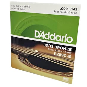Encordoamento 09 Aço Bronze Daddario 09-45 Violão EZ890-B Jogo de Cordas para violão + 1 corda extra A linha de cordas de aço D'Addario vão te surpreender com o brilho no som, sustain e durabilidade. Proporcionam um timbre perfeito por músicos em todo o mundo - Modelo EZ 890-B - Tensão Super Light leve - Contém 6 cordas de aço + 1 extra - Presas com bolinhas coloridas Marca: Não Informado