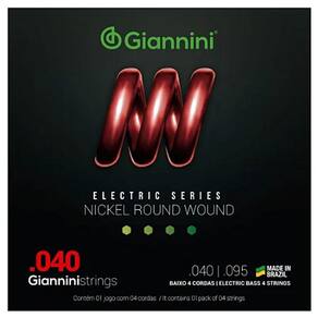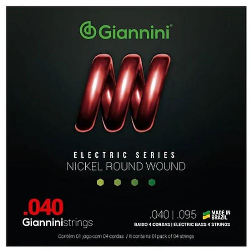 A série Electric traz toda a sonoridade dos encordoamentos Giannini para a sua guitarra e contra-baixo. O encordoamento para baixo 04 cordas Giannini GEEBRL é composto de um núcleo de aço revestido por Níquel. O Níquel produz um som brilhante e agressivo que atende uma grande variedades de estilos musicais, sendo bem resistente a oxidação e corrosão.