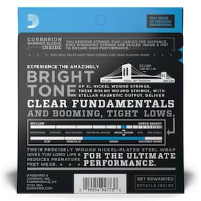 As cordas de contrabaixo XL Nickel Electric Bass são reconhecidas mundialmente como a escolha dos grandes músicos, de todos os estilos. Todas as cordas são precisamente enroladas em nossas exclusivas máquinas controladas por computador, assegurando a cada uma delas perfeita afinação, notas fundamentais limpas e inigualável consistência. O enrolamento com fios de aço banhados a níquel resulta em um timbre brilhante e excelente afinação, proporcionando um timbre universal, para todos os estilos musicais.?