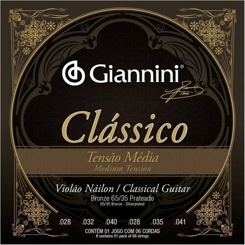 ENCORDOAMENTO PARA VIOLÃO NYLON 65/35 TENSÃO MÉDIA BRONZE PRATEADO GENWPM Encordoamento Violão Náilon Média com Bordões em Bronze 65/35 Prateado e Primas em Náilon Cristal. Alma: Náilon Revestimento: Bronze 65/35 Comprimento de escala: 648 mm / 25 1/2" Ean: 7898159186897