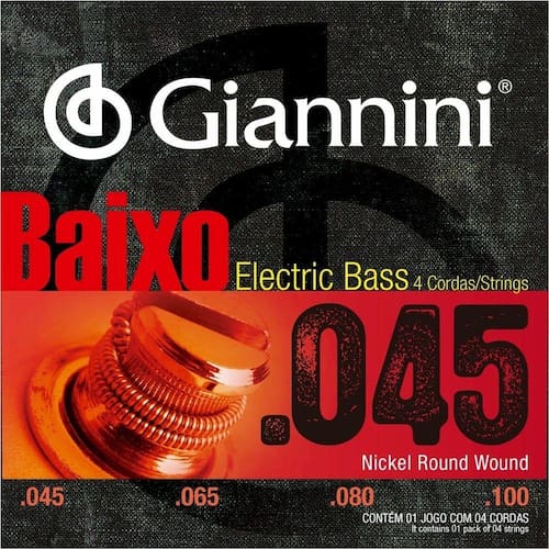 As cordas Giannini Nickel Round Wound proporcionam o timbre e brilho que você procura para o seu baixo.Oferecem um timbre "cheio e gordo" com bastante volume e ótima durabilidade, além de apresentarem grande sutain e um atack forte quando usada para executar slaps e tappings.São perfeitas para o rock e para outros estilos onde o baixo tem que se destacar.As cordas Giannini trazem a mesma qualidade presente em seus tradicionais instrumentos.Produto original fabricado no BrasilConteúdo da embalagem: 4 cordasTensão das Cordas: .045 - .065 - .080 - .100Fornecedor: GIANNINI S/A