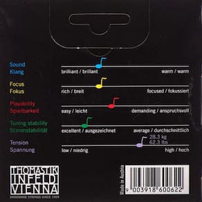 As cordas Spirocore têm um núcleo de corda espiral multifios flexível. Eles oferecem um período mais longo de vibração musical e reduzem significativamente a inércia. As cordas Spirocore são igualmente eficazes ao tocar arco ou pizzicato. Eles são altamente responsivos e duradouros.