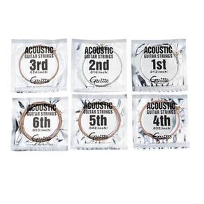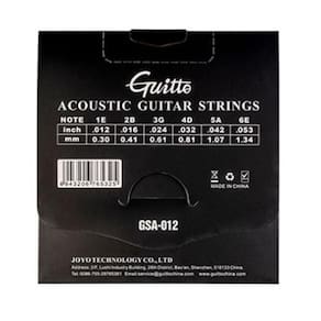 1. Feito de liga de aço carbono de alta durabilidade 2. Revestidas com material anto-oxidante para maior durabilidade 3. Embaladas a vácuo 4. Para uso em violão acústico 5. Cada pacote contém 6 cordas: 1x 0,012 in 1x 0,016 in 1x 0,024 in 1x 0,032 in 1x 0,042 in 1x 0,053 in Marca: Guitto Ean: 6943206765325
