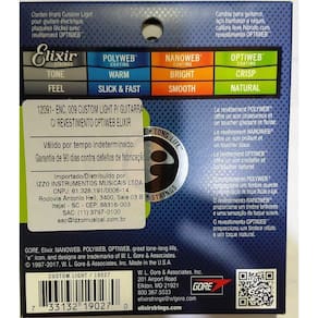 As cordas Elixir® Strings para Guitarra com Revestimento OPTIWEB® tem timbre vivo e toque natural, além de manter a tradicional vida útil de uma corda Elixir. Com essa inovação, os músicos que usam cordas não revestidas têm todos os benefícios premium das cordas Elixir revestidas, sem sacrificar o timbre e toque que tanto amam. Medida: .009 .011 .016 .026 .036 .046 Custom Light Material: Aço Revestimento: Optiweb