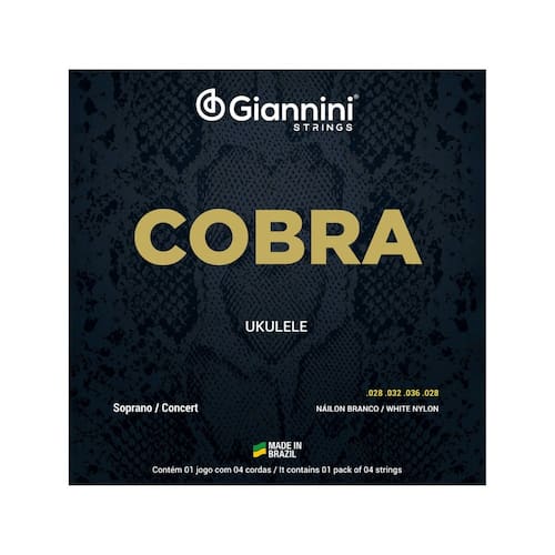 Encordoamento Giannini P/Ukulele Nylon Branco GEUKSCA série Cobra apresenta toda a versalidade dos encordoamentos Giannini. O encordoamento para ukulele Giannini Cobra GEUKSC é perfeita para ukuleles Concert ou Soprano, para você tirar o melhor som do seu instrumento. Todos os encordoamentos Giannini são produzidos no Brasil. Jogo de 4 cordas para Ukulele.Marca: GianniniSérie: CobraFabricação: BrasilTensão: LeveAlma: Nylon Branco