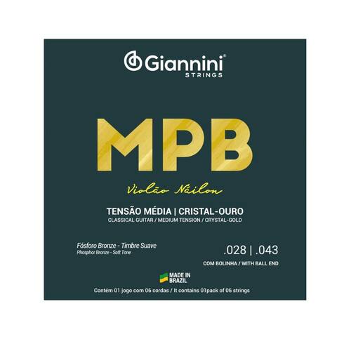Encordoamento Giannini P/Violão Nylon Cristal/Ouro C/Bolinha GENWG A série MPB apresenta toda a sonoridade que a nossa música brasileira pede. O encordoamento para violão náilon Giannini MPB GENWG é indicado para músicos que gostam de cordas com uma pegada média. Produzidas em náilon cristal-ouro, o modelo GENWG tem tensão média. Jogo de 6 cordas para Violão.Marca: GianniniSérie: MPBFabricação: BrasilAlma: NylonRevestimento: Fósforo Bronze