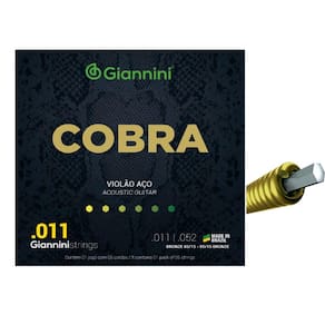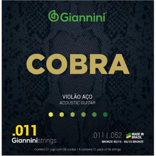 A série Cobra apresenta toda a versalidade dos encordoamentos Giannini. O encordoamento para violão aço Giannini Cobra GEEFLK é revestido com Bronze 85/15, indicado para músicos que gostam de encordoamento com um som brilhante, encorpado e com ótimo sustain.