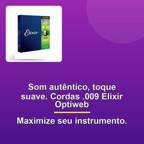 Encordoamento Guitarra .009 Custom Light Optiweb Elixir Obtenha um som vivo e autêntico com o Encordoamento Para Guitarra .009 Custom Light Optiweb. Este produto inovador oferece o timbre e toque naturais que os músicos amam, mantendo ao mesmo tempo a vida útil prolongada que é característica das cordas Elixir. Com o revestimento Optiweb, você não precisará sacrificar o som para ter durabilidade. Desenvolvidas para guitarristas que desejam um som mais leve e preciso, essas cordas têm um diâmetro de .009 e são confeccionadas com material de aço de alta qualidade. O toque é suave e fácil, permitindo que você desempenhe complexas seqências de acordes e solo com facilidade.