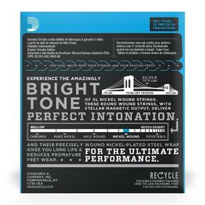 Encordoamento Guitarra 09-42 Corda Extra D Addario Exl120-b [f035] As D Addario XL Nickel Wound são reconhecidas mundialmente como a escolha dos grandes músicos de todos os gêneros e estilos. São feitas de aço banhado a níquel e enroladas com alta precisão ao redor de uma alma hexagonal, resultando em uma corda com inconfundível timbre brilhante e excelente afinação. Origem:Estados Unidos Unidades por Embalagem:1 Gênero:Unissex Material:Aço + Niquel Linha:XL NICKEL WOUND Calibre da Corda:.009 .011 .016 .024 .032 .042 Tipo de Corda:ROUNDWOUND Quantidade de Cordas:6 Tensão:Extra Leve Instrumento Recomendado:Guitarra