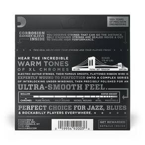 Encordoamento Guitarra 10-48 D Addario Xl Chromes Ecg23 [f035] As cordas D Addario Chromes Flat Wound são as cordas flat mais famosas do mundo, devido a seu toque macio, cobertura lisa e excelente sonoridade. Após o enrolamento, cada corda recebe 3 etapas de polimento, resultando numa superfície macia que faz das cordas Chromes a escolha ideal dos guitarristas de jazz e fusion. O timbre quente é ideal para o jazz, rockabilly e R&B. Origem:Estados Unidos Unidades por Embalagem:1 Gênero:Unissex Material:Aço Linha:XL CHROMES Calibre da Corda:.010 .014 .020 .028 .038 .048 Tipo de Corda:ROUNDWOUND Quantidade de Cordas:6 Tensão:Extra Leve Instrumento Recomendado:Guitarra