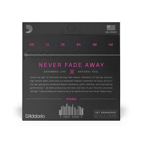 Encordoamento Guitarra Daddario 009 Xt 6 Cordas Xte0942 Alta durabilidade sem sacrificar o timbre. Finalmente cordas que não tem som de cordas revestidas. Durabilidade 4 vezes maior que a das cordas tradicionais, sem sacrificar o timbre e feeling natural de cordas não revestidas, que os músicos conhecem e adoram. Especificações: - Marca: Daddario - Modelo: Xte0942 - Tipo: Guitarra 6 cordas - Calibre: .009 .011 .016 .024 .032 .042 - Material: Nickel Plated Steel Imagens Meramente Ilustrativas Adquirimos e comercializamos somente produtos das importadoras oficiais das marcas. : 3 meses pelo Importador / Fornecedor Ean: 019954308926