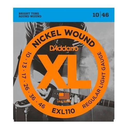 Encordoamento Guitarra Daddario 0.10 Exl110Corda para guitarra daddario exl110-b 0.10 + corda extraEncordoamento daddario exl110-b 010-046 guitarraAs exl110 são as mais vendidas na daddario. Proporcionam uma combinação ideal de timbre, flexibilidade e durabilidade. Um padrão para maioria das guitarras.As daddario xl nickel wound são reconhecidas mundialmente como a escolha dos grandes músicos, entre guitarristas de todos os gêneros e estilos. São feitas de aço banhado a níquel e enroladas com alta precisão ao redor de uma alma hexagonal, resultando em uma corda com inconfundível timbre brilhante e excelente afinação. Marca: d addario Modelo: exl110-b 1ª corda extra Mais durabilidade Preço e flexibilidade Timbre incomparavél Made in usa Itens inclusos 1 jogo de cordas