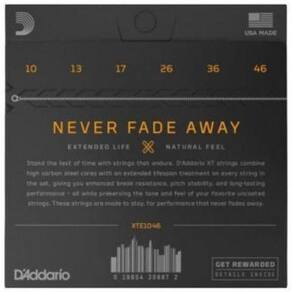 Encordoamento para Guitarra .010 Nickel Plated Steel XT D Addario Alta durabilidade sem sacrificar o timbre. Finalmente cordas de alta durabilidade que não tem som de cordas revestidas. Durabilidade 4 vezes maior que das cordas tradicionais, sem sacrificar o timbre e feeling natural de cordas não revestidas, que os músicos conhecem e adoram.