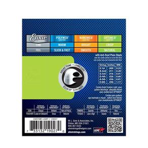 Encordoamento guitarra elixir 09 custom ligth optiweb 19027 As cordas elixir para guitarra em aço banhado a níquel com revestimento optiweb proporcionam o desempenho de cordas tradicionais - o timbre vivo, o toque natural e a tocabilidade que você conhece e gosta - sem sacrificar a característica de vida longa do timbre que você já espera das cordas elixir. O mesmo timbre vivo de cordas não revestidas o revestimento optiweb proporciona toque natural cordas para guitarra fabricadas com enrolamentos em aço banhado a níquel nossa tecnologia de revestimento protege contra a corrosão e o acúmulo de detritos, prolongando a vida do timbre como nenhuma outra marca de cordas, revestidas ou não O tratamento anti-rust nas cordas lisas garantem vida longa do timbre para o jogo completo menos incômodo e despesa com frequentes trocas de cordas, mais tempo tocando
