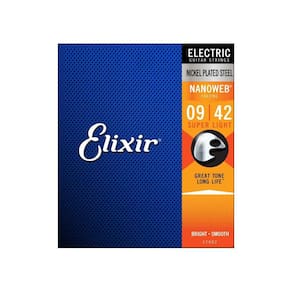 Encordoamento Guitarra Elixir Nanoweb 009 042 Super Light 12002 As cordas Elixir® tem presença e força, porém, quando se fala em durabilidade, não há comparação. Muitos músicos reportam que o tom dos encordoamentos Elixir® duram mais que qualquer outra marca do mercado, sejam elas revestidas ou não. O revestimento de polímero da Elixir® é patenteado, cobre a corda inteira e forma uma barreira para o acúmulo de resíduos, de forma a manter o tom por mais tempo que outras marcas. Além disso, todos os jogos da Elixir® tem proteção anti-corrosiva nas cordas planas, por uma tecnologia inovadora de revestimento que impede a ferrugem e corrosão, prolongando sua vida útil de 3 a 5 vezes mais que as cordas comuns. Ean: 0733132120024