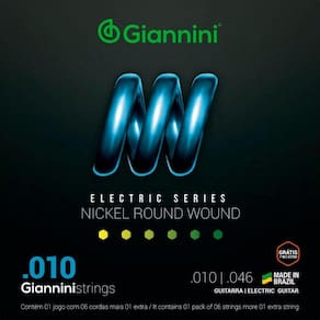 A série Electric traz toda a sonoridade dos encordoamentos Giannini para a sua guitarra e contra-baixo. O encordoamento para guitarra Giannini GEEGST10 é composto de um núcleo de aço revestido por Níquel, produz um som brilhante e agressivo que atende uma grande variedades de estilos musicais, sendo bem resistente a oxidação e corrosão.