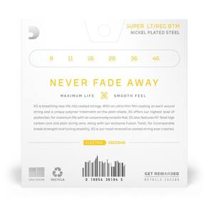 A D Addario XS para guitarra representa o início de uma nova era em cordas revestidas. Com seu revestimento ultrafino em cada corda espiralada e tratamento de polímero exclusivo nas cordas lisas, a XS oferece durabilidade extrema com o mais alto nível de proteção, além de um toque surpreendentemente suave. Nossa exclusiva tecnologia Fusion Twist reduz o atrito da corda com o nut, assim você passa mais tempo tocando e menos tempo afinando. O consagrado núcleo NY D'Addario, com alta concentração de carbono, produz resistência e estabilidade de afinação incomparáveis. XS é a corda revestida mais inovadora já criada.
