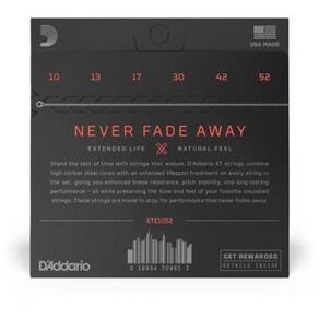 Encordoamento Guitarra Revestido Hibrido .010-.052 Xt Nickel Xte1052 D Addario O Encordoamento Para Guitarra D Addario XTE1052 XT é a escolha líder de mercado para músicos exigentes. Suas cordas apresentam um núcleo robusto de aço de alto carbono, combinado com um revestimento ultrafino que não apenas oferece durabilidade excepcional, mas também proporciona uma tocabilidade suave e confortável. Este modelo é reconhecido por sua resistência, garantindo uma longa vida útil mesmo em condições de uso intensivo. Além disso, destaca-se pela estabilidade de afinação, assegurando um desempenho consistente em todas as situações musicais. A DAddario desde de 1974 se preocupa em entregar produtos de extrema qualidade em cordas para instrumentos musicais, mas também a marca distribui outros acessórios musicais sob outras marcas.Aplicação:Guitarra Tensão:.010 Revestimento:Núcleo de aço de alto carbono com revestimento ultrafino Pesquisa:encordoamento|D Addario|guitarra|encordoamento guitarra