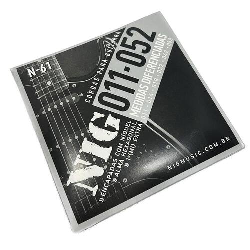 Encordoamento NIG 11-52 Guitarra + 1 corda extra + palheta Está a procura de cordas de qualidade para a sua guitarra A linha de encordoamentos NIG vão te surpreender com o brilho no som, sustain e durabilidade. Proporcionam um timbre perfeito por músicos em todo o Brasil - Tensão .011 - Média Regular - Encapadas com Nickel - Alma Hexagonal - Estanhadas e Polidas - contém 6 cordas + 1 corda E mi extra + 1 palheta Marca: Não Informado Ean: 7806127072417