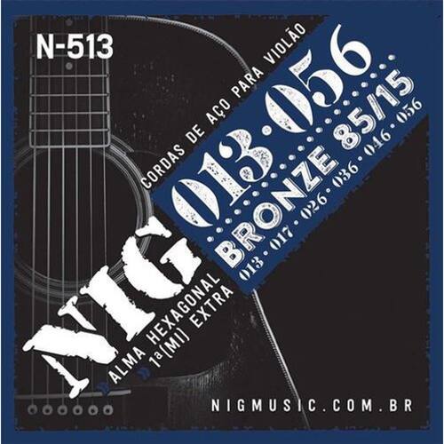 Encordoamento Nig N-513 Violão Aço Folk 013 Bronze 85/15 As cordas de aço para violão folk da série Bronze 85/15 são próprias para violões de cordas de aço sendo produzidas com material e revestidas em bronze. São fabricadas em em 5 medidas, sempre com a corda MI extra: 009:de .009 .012 .015 .025 .035 .045 010:de .010 .014 .022 .030 .040 .050 011:de .011 .015 .023 .030 .039 .050 012:de .012 .016 .024 .032 .042 .053 013:de .013 .017 .026 .036 .046 .053 Conteúdo 1 Jogo de cordas de aço para violão folk Marca: Não Informado Ean: 7897813412501