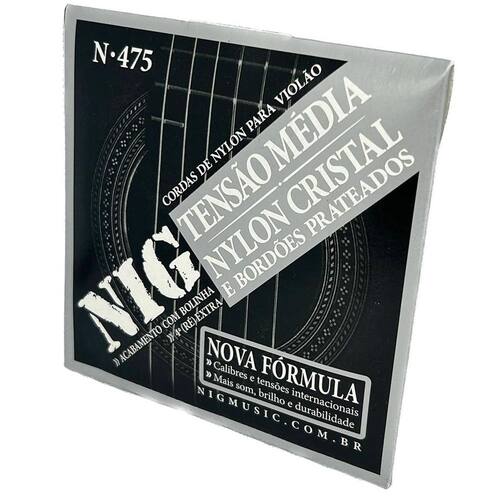 - modelo n475 - tensão média 028-043 - com bolinhas - contém 6 cordas em nylon + 1 corda extra d ré + palheta Marca: Nig N475