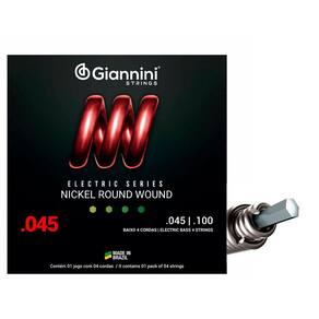 A série Electric traz toda a sonoridade dos encordoamentos Giannini para a sua guitarra e contra-baixo. O encordoamento para baixo 04 cordas Giannini GEEBRS é composto de um núcleo de aço revestido por Níquel. O Níquel produz um som brilhante e agressivo que atende uma grande variedades de estilos musicais, sendo bem resistente a oxidação e corrosão.