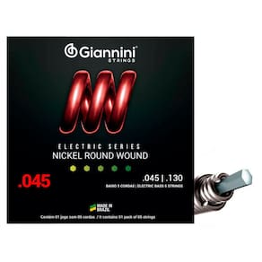 A série Electric traz toda a sonoridade dos encordoamentos Giannini para a sua guitarra e contra-baixo. O encordoamento para baixo 05 cordas Giannini GEEBRS5 é composto de um núcleo de aço revestido por Níquel. O Níquel produz um som brilhante e agressivo que atende uma grande variedades de estilos musicais, sendo bem resistente a oxidação e corrosão.