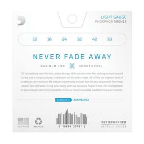 A D'Addario XS Phosphor Bronze para violão aço representa o início de uma nova era em cordas revestidas. Com seu revestimento ultrafino em cada corda espiralada e tratamento de polímero exclusivo nas cordas lisas, a XS oferece durabilidade extrema com o mais alto nível de proteção, além de um toque surpreendentemente suave. Nossa exclusiva tecnologia Fusion Twist reduz o atrito da corda com o nut, assim você passa mais tempo tocando e menos tempo afinando. O consagrado núcleo NY D'Addario, com alta concentração de carbono, produz resistência e estabilidade de afinação incomparáveis. XS é a corda revestida mais inovadora já criada.