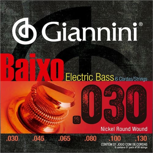 Encordoamento para Baixo 6 Cordas Giannini 030 / 130 GEEBRL6 As cordas Giannini Nickel Round Wound proporcionam o timbre e brilho que você procura para o seu baixo. Oferecem um timbre "cheio e gordo" com bastante volume e ótima durabilidade, além de apresentarem grande sutain e um atack forte quando Utilizado para executar slaps e tappings. São perfeitas para o rock e para outros estilos onde o baixo tem que se destacar. As cordas Giannini trazem a mesma qualidade presente em seus tradicionais instrumentos. Produto fabricado no Brasil Contúdo da embalagem: 6 cordas Tensão das Cordas: .030 - .045 - .065 - .080 - .100 - .130 Fornecedor: GIANNINI S/A OBS: Indicadas para baixos de escala longa 864 mm / 34 Polegadas Marca: Não Informado Ean: 7898159187252