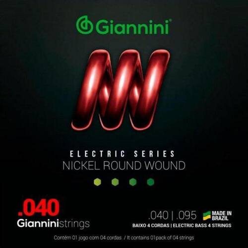 O encordoamento para baixo 04 cordas Giannini GEEBRL é composto de um núcleo de aço revestido por Níquel. Além de produzir som brilhante e agressivo que atende uma grande variedade de estilos musicais, sendo bem resistente a oxidação e corrosão.