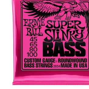 As cordas para baixo Ernie Ball Super Slinky são enroladas para um som brilhante e balanceado. Cada corda é fabricada com as melhores matérias-primas no belo Coachella Valley, no sul da Califórnia. A lista de endorsees das cordas de baixo Ernie Ball é uma lista dos artistas mais vendidos