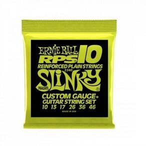 Encordoamento Para Guitarra 010.046 Rps Ernie Ball [f002] As cordas Ernie Ball RPS trazem harmônicos ricos que são a marca registrada das cordas Slinky. Cordas planas nos jogos RPS duram mais e mantém a afinação por mais tempo do que cordas normais. Um fio de bronzepatenteado é firmemente enrolada ao redor do lock twist do ball end das cordas planas, minimizando a quebra das cordas e deixando-as menos escorregadias, o que geralmente ocorre em outros tipos de cordas. Aplicação:Guitarra Tensão:.010 - .046