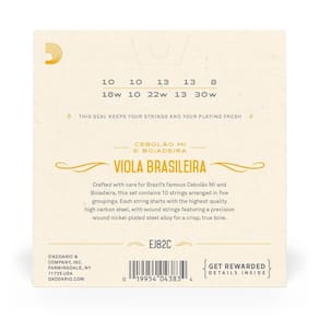 EJ82C é um conjunto de cordas de Viola Brasileira de aço niquelado otimizado para afinações de Cebolão Mi e Boiadeira. O portfólio de produtos da D'Addario projetados especificamente para a World Instruments é baseado em pesquisas e testes de produtos com construtores de instrumentos, educadores e jogadores profissionais.