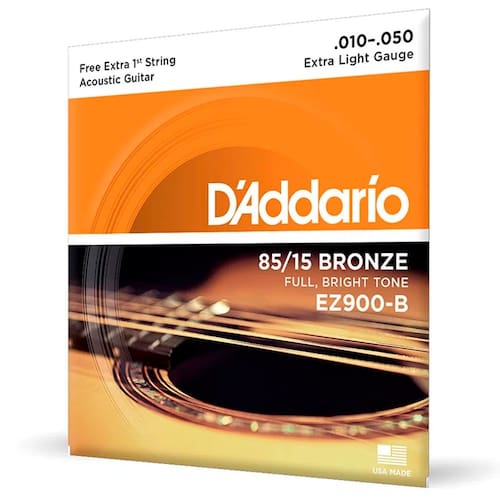 O encordoamento EZ900 é o encordoamento mais vendido da D'Addario, produzido em bronze americano 85/15, que é ideal para violões acústicos por possuir um timbre cristalino mais controlado. Todas as cordas D'Addario são feitas com alma hexagonal, gerando excelente entonação e durabilidade.