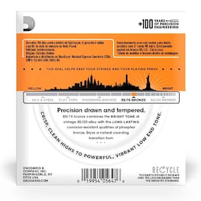 O Encordoamento Violão D`addario 0.10 EZ900 possui material em bronze que proporcionam um timbre brilhante com um ótimo sustain, combinado com o brilho das 80/20 Bronze, com as características de durabilidade das Phosphor Bronze.