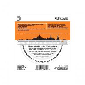Encordoamento Para Violão Aço Ej10-b 80/20 Bronze A liga de bronze 80/20, foi a liga originalmente selecionada para instrumentos acústicos pelo Sr. John D Addario e John D'Angelico por volta de 1930. As 80/20 são populares para gravação graças ao timbre encorpado e grave cultuado por muitos tradicionalistas por seu significado histórico. Código - Nota - pol - mm - lbs. - kg PL010 - E - 0.010 - 0.25 - 16.20 - 7.35 PL014 - B - 0.014 - 0.36 - 17.8 - 8.07 BW023 - G - 0.023 - 0.58 - 27.2 - 12.34 BW030 - D - 0.030 - 0.76 - 26.2 - 11.88 BW039 - A - 0.039 - 0.99 - 24.5 - 11.11 ]]>