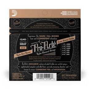Composição detalhada das cordas: * Bordões (baixos) D’Addario Pro-Arté: núcleo de nylon polimerizado multifilamentar com revestimento em cobre banhado em prata * Primas (cordas agudas): nylon de alta qualidade cristalino (transparente)