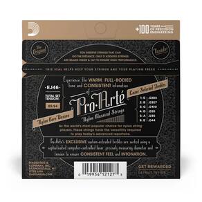 As cordas D addário EJ 46 Pro-Arté para violão. São conhecidas pela sua qualidade. Desenvolvidas em nylon revestido de prata produzem um som penetrante, equilibrado com um timbre insuperável. Além de garantir maior durabilidade. Atendendo assim, os requisitos dos mais conhecidos padrões de afinação, acertando em cheio no gosto dos músicos mais exigentes. Sendo assim, primeira opção entre os maiores profissionais do ramo.