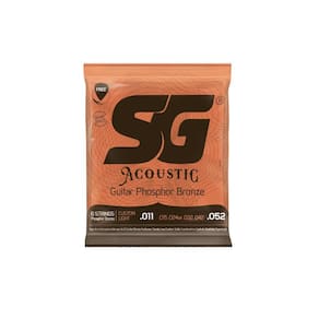 - Tensão: Custom Light - As cordas SG são e alta qualidade e com custo relativamente baixo. - Excelente para quem está começando a tocar ou quem já toca. - Os trimbes de cada corda são ouvidos com qualidade. As cordas de tensão Custom Light são ideais para músicos que aplicam pouca pressão nas mãos ou que prefiram uma sonoridade mais discreta ou até mesmo para quem esteja estudando o violão de aço. Em solos ou palhetadas, o timbre é sempre limpo e contagiante, seja qual for o estilo musical. Maior durabilidade, com brilho e pegada exuberantes. É para isso que a linha de bronze fosforoso foi desenvolvida. Medidas para uso em escala com comprimento de 25,5 polegadas, 648 mm. - Cordas primas em aço estanhado cilíndrico. - Bordões com revestimento de bronze fosforoso e núcleo hexagonal de aço estanhado.