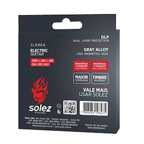A solez strings espera ser reconhecida mundialmente em meados de 2020 por inovar e estar à frente com a fórmula perfeita, assim se tornando a melhor empresa no mercado nacional de encordoamentos por produzir cordas com melhor alinhamento, durabilidade, timbre e afinação. A solez slg9-ga: Corda solez com dlp dual layer protection e liga gray alloy, uma liga que tem altíssima resistência à oxidação e corrosão. Sua propriedade intrínseca possibilita uma duração de até 10 vezes mais que o nps 8% normalmente utilizado nas cordas. Seu timbre é mais robusto, mais forte nos médios graves, mantendo ainda um ótimo brilho e presença. A tocabilidade com esta liga é pouco alterada, apresentando leve mudança de textura. É chamada de gray alloy pois possui uma coloração mais acinzentada com brilho mais específico. Especificações: Marca: solez Modelo: slg9-ga Material do núcleo: aço inoxidável Material do enrolamento: aço inoxidável Calibres: e.009 2 b.011 2 g.016 d.024 a.032 e. : 3 meses pelo importador / fornecedor Marca: Não Informado Ean: 7898963198475