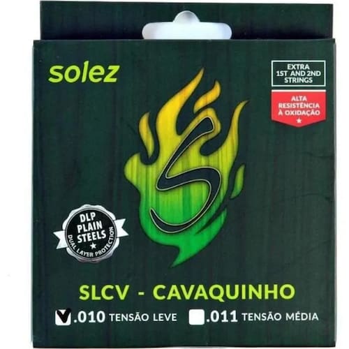 - Fabricação no Brasil com matéria-prima importada de alta qualidade - Indicado para músicos que gostam de flexibilidade com corpo sonoro - Mantém uma boa tocabilidade, porém com timbre mais encorpado. - Extra: Primeira e Segunda cordas extra - Tecnologia DLP, Dual Layer Protection que confere as cordas primas dupla camada de proteção, assim evitando a oxidação precoce causada pelo suor das mãos. Calibres: - 2 x .010 - 2 x .013 - 1 x .020 - 1 x .030