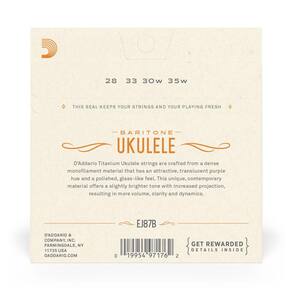 O encordoamento EJ87B para ukulele barítono é composto com a Pro-Arté Titanium nas cordas primas E e B, combinadas com a Pro-Arté Nylon Core nas cordas bordões G e D. A resposta de harmônicos da Pro-Arté Titanium resulta em um timbre brilhante, proporcionando a sonoridade desejada pelos músicos e que os amantes do Ukulele tanto procuram.?
