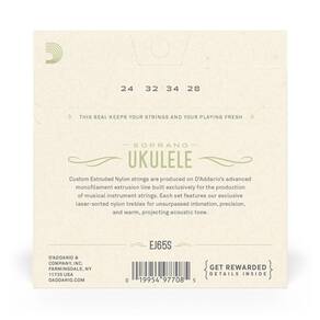 Encordoamento Ukulele Soprano D Addario Pro-arté Ej65s [f035] Cada set das cordas Extruded Ukulele é fabricado pela D Addario na linha avançada de extrusão monofilamentar construída exclusivamente para a produção de cordas de instrumentos musicais. Cada encordoamento apresenta primas Pro-Arté de nylon transparentes e escolhidas a laser, com timbre quente e projetado e afinação sem precedentes.? Origem:Estados Unidos Unidades por Embalagem:1 Gênero:Unissex Material:Aço + Nylon Linha:PRO-ARTÉ Calibre da Corda:.024 .032 .034 .028 Tipo de Corda:ROUNDWOUND + NYLON Quantidade de Cordas:6 Tensão:Media Instrumento Recomendado:Ukulele