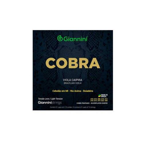 Jogo de 10 cordas para Viola. Marca: Giannini Série: Cobra Fabricação: Brasil Tensão: Leve Alma: Aço Revestimento: Cobre Prateado