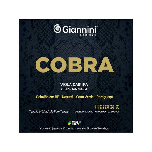 Encordoamento Viola Giannini Cobre Prateado Alta GESVAEncordoamento para viola caipira Giannini Cobra calibre 0.010” tensão leve em cobre prateado com bolinha modelo GESVL. Para afinações Cebolão em Ré, Natural, Cana Verde e Paraguaçu. Jogo de 10 cordas para Viola.Marca: GianniniSérie: CobraFabricação: BrasilTensão: MédiaAlma: AçoRevestimento: Cobre Prateado