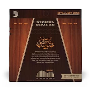 Origem:Estados Unidos Unidades por Embalagem:1 Gênero:Unissex Material:Aço + Bronze + Niquel Linha:NICKEL BRONZE Calibre da Corda:.010 .014 .023 .030 .039 .047 Tipo de Corda:ROUNDWOUND Quantidade de Cordas:6 Tensão:Extra Leve Instrumento Recomendado:Violão Aço