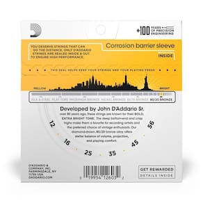 Encordoamento Violão Aço 12-56 D Addario 80/20 Bronze Ej14 [f035] A liga 80/20 Bronze foi originalmente selecionada para instrumentos acústicos por John D Addario Sr. e John DAngelico por volta de 1930. As 80/20 são populares para gravação gracas ao timbre nítido, encorpado e grave cultuado por muitos músicos. As cordas são enroladas em um núcleo de aço com alta concentração de carbono resultando em um som brilhante com excelente timbre. Unidades por Embalagem:1 Gênero:Unissex Material:Aço + Bronze Linha:BRONZE 80/20 Calibre da Corda:.012 .016 .025 .035 .045 .052 Tipo de Corda:ROUNDWOUND Quantidade de Cordas:6 Tensão:Leve Híbrida Código Universal do Produto:19954126032 Marca:D Modelo:EJ14 SKU:012078