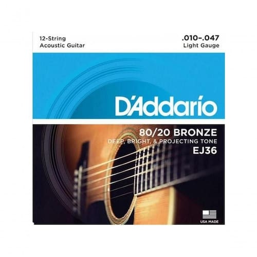 Encordoamento Violão Aço 12 Cordas .010-.047 80/20 Bronze O Encordoamento Para Violão D Addario EJ36 é o modelo ideal para os músicos que preferem um timbre mais suave e fácil tocabilidade. Projetada para todos os modelos de violões de 12 cordas. A liga de bronze 80/20, foi a liga originalmente selecionada para instrumentos acústicos pelo Sr. John D Addario e John D'Angelico por volta de 1930. As 80/20 são populares para gravação graças ao timbre encorpado e grave cultuado por muitos tradicionalistas por seu significado histórico. Cordas: - E (0.010), E (0.010) - B (0.014), B (0.014) - G (0.023), G (0.008) - D (0.030), D (0.012) - A (0.039), A (0.018) - E (0.047), E (0.027) Aplicação:Violão 12 cordas Tensão:.010 - .047 - Leve Material:Bronze 80/20 Pesquisa:encordoamento corda cordas 12 0,10 0.10 010 daddario D Addario d.addario O Encordoamento Para Violão D Addario EJ36 é o modelo ideal para os músicos que preferem um timbre mais suave e fácil tocabilidade. Projetada para todos os modelos de violões de 12 cordas. A liga de bronze 80/20, foi a liga originalmente selecionada para instrumentos acústicos pelo Sr. John D Addario e John D'Angelico por volta de 1930. As 80/20 são populares para gravação graças ao timbre encorpado e grave cultuado por muitos tradicionalistas por seu significado histórico. Cordas: - E (0.010), E (0.010) - B (0.014), B (0.014) - G (0.023), G (0.008) - D (0.030), D (0.012) - A (0.039), A (0.018) - E (0.047), E (0.027) Aplicação:Violão 12 cordas Tensão:.010 - .047 - Leve Material:Bronze 80/20 Pesquisa:encordoamento corda cordas 12 0,10 0.10 010 daddario D Addario d.addario Ean: 7894858872819